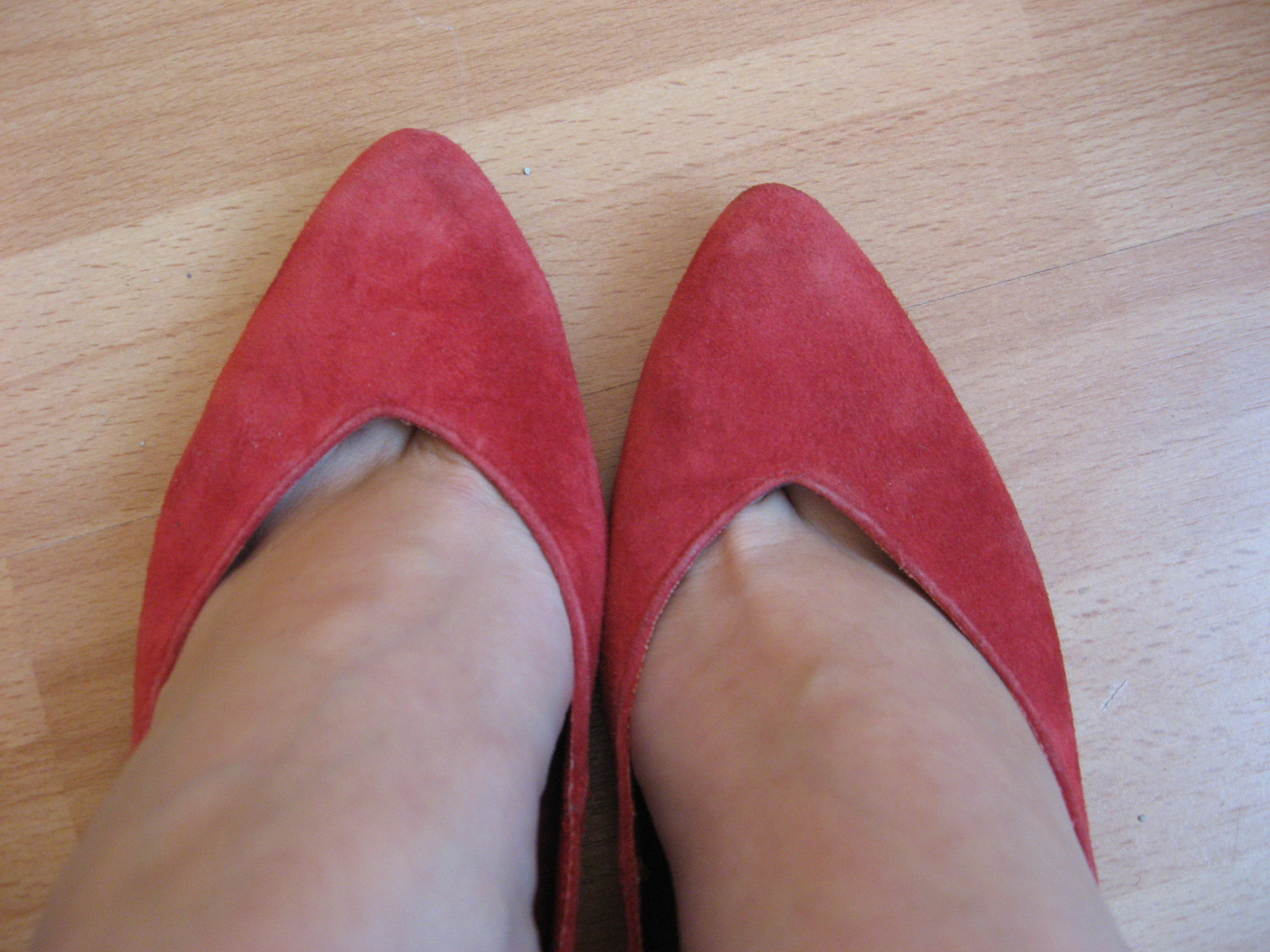 Sacou rosu de lana- vandut & pantofi negri Janet D.- vanduti Monica
